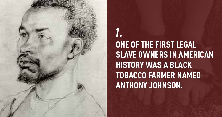 The first legal slave owner in American history was a black tobacco farmer named Anthony Johnson.