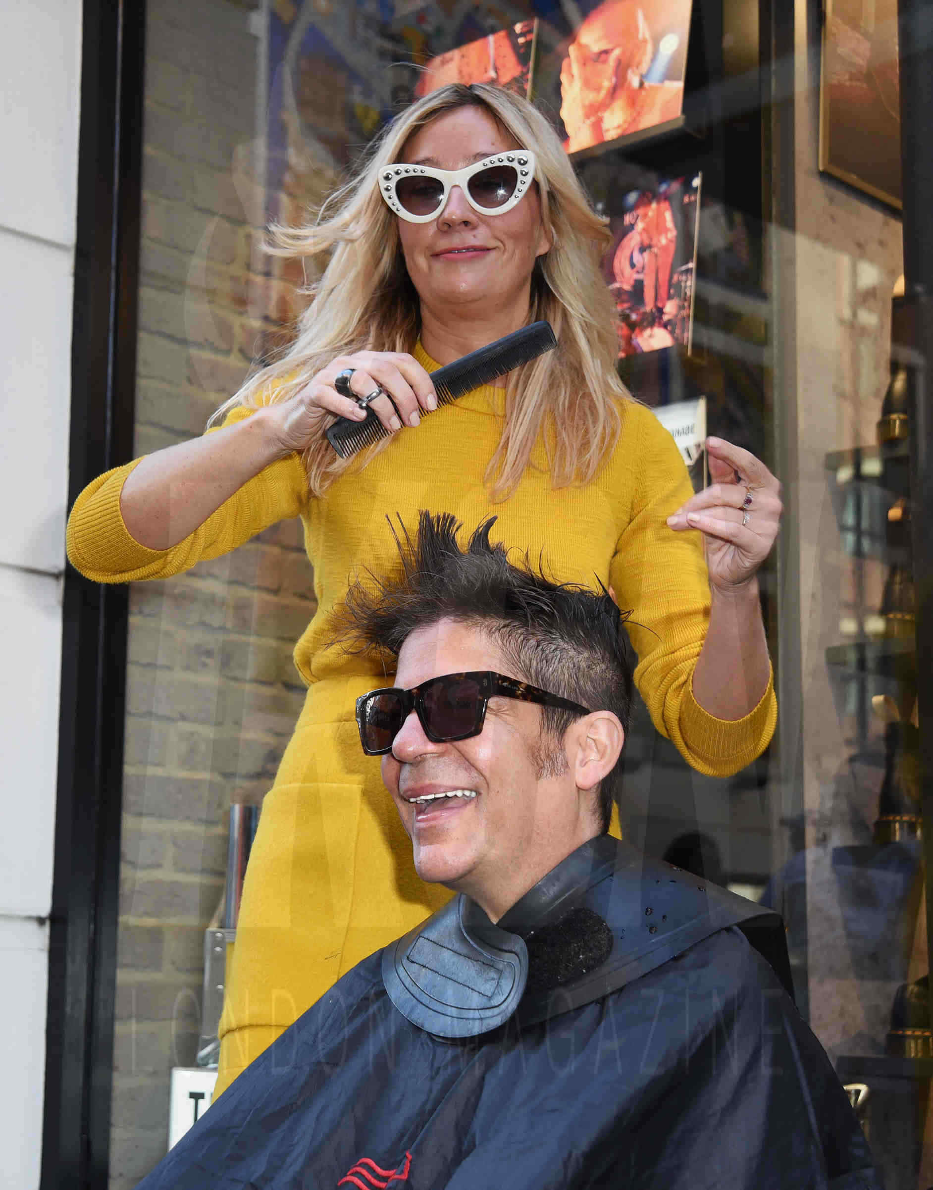 One of the most entertaining stylists of London Fashion Week, Emma Lehane – AKA Hair in The Chair – stepped on busy Carnaby Street to trim the hair of celebrity photographer and publisher Joe Alvarez to support Emma’s charity of choice Crisis.