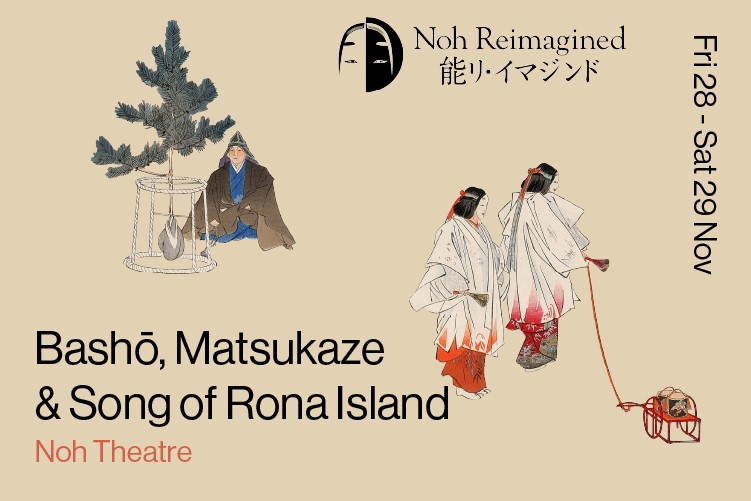The programme includes Bashō, a tale of plantain trees and enlightenment, with a playful English interlude, and Matsukaze, a story of ghostly love and seaside solitude, featuring a workshop led by shite actor Haruhiko Hasegawa.