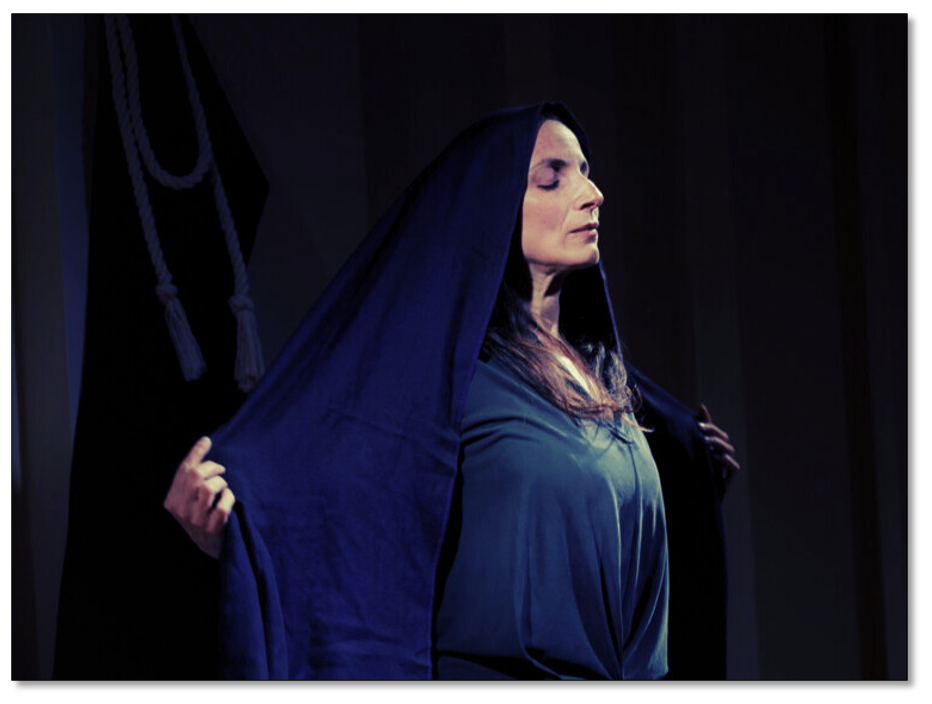 Mazzon inhabits multiple roles in this solo performance, shifting effortlessly between characters: the searching Everywoman, her bold friend Sybille, the revered Guglielma of Bohemia, the noble nun Maifreda Pirovano, and the menacing Inquisitor. Together, these figures weave a tapestry of spiritual rebellion and female power.